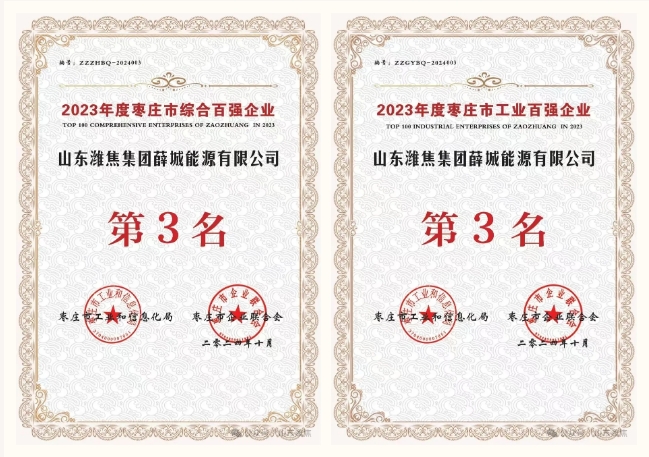 【喜訊】薛城能源公司、棗莊杰富意公司雙獲2023年度棗莊市“綜合百?gòu)?qiáng)企業(yè)”和“工業(yè)百?gòu)?qiáng)企業(yè)”稱號(hào)