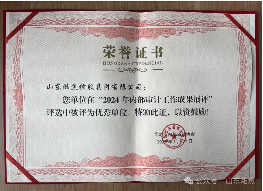 近日,濰坊市內(nèi)部審計(jì)協(xié)會(huì)組織2024年全市內(nèi)部審計(jì)工作成果展評(píng),集團(tuán)公司榮獲“2024年內(nèi)部審計(jì)工作成果展評(píng)優(yōu) 秀單位”稱號(hào)。
