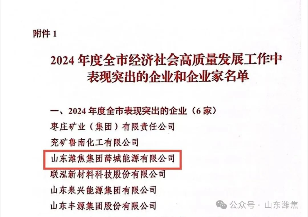 4月9日上午,棗莊市委、市政府召開2024年度高質量發(fā)展綜合績效考核總結大會,薛城能源公司榮獲“高質量發(fā)展工作突出企業(yè)”榮譽稱號。